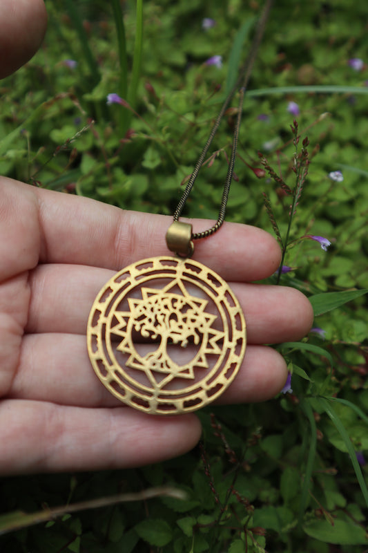 Aurora Vessel Brass Roller Quartz & Blue Labradorite Pendant