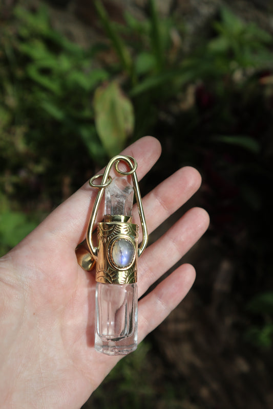 Aurora Vessel Brass Roller Quartz & Moonstone Pendant