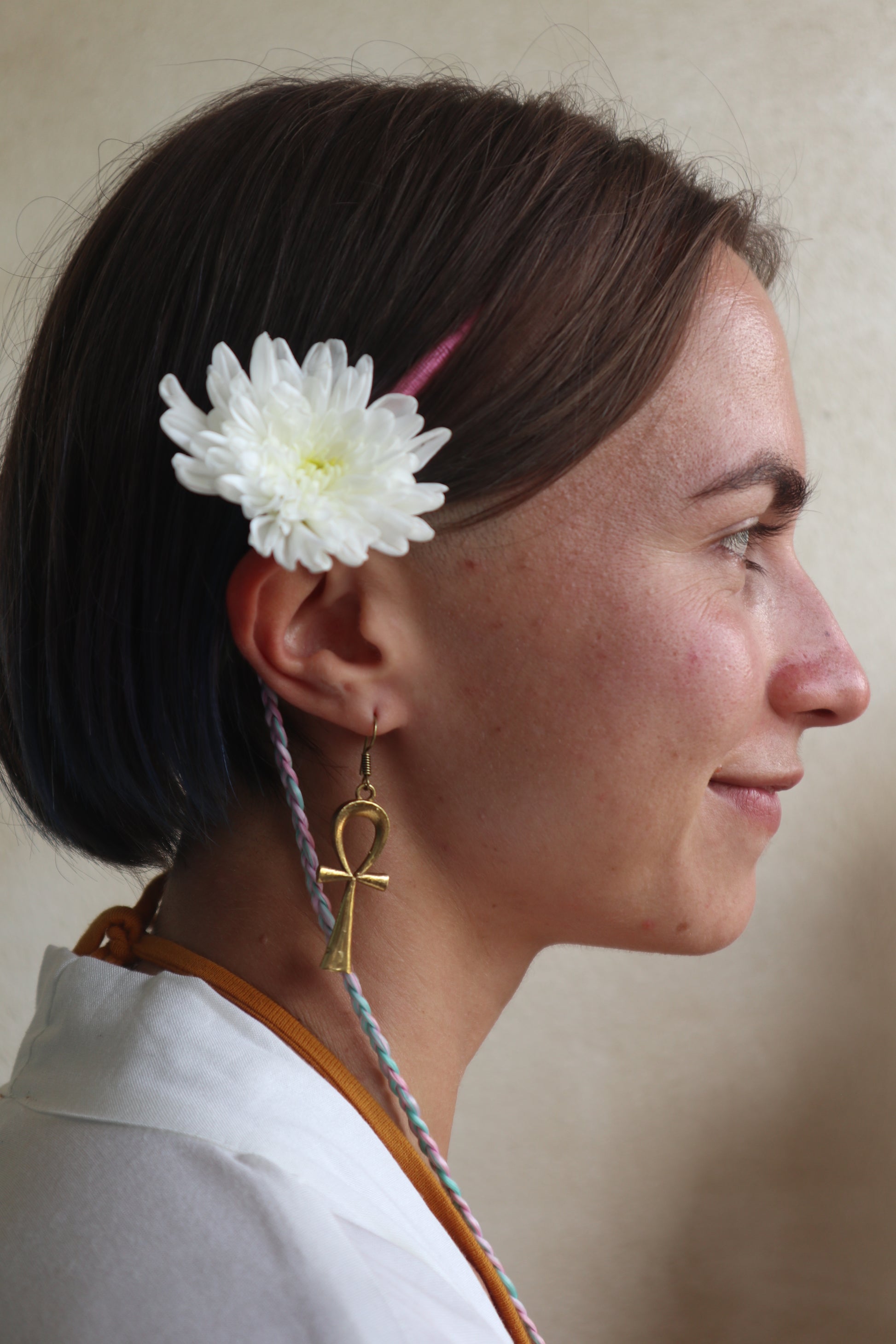 Beautiful handmade The Ankh brass earrings feature an ancient Egyptian hieroglyphic symbol that signifies the essence of life. This powerful symbol is commonly seen in the hands of deities and rulers, as well as on sacred structures like tombs and temples.e ankh is sometimes referred to as the "key of life" or the "key of the Nile".