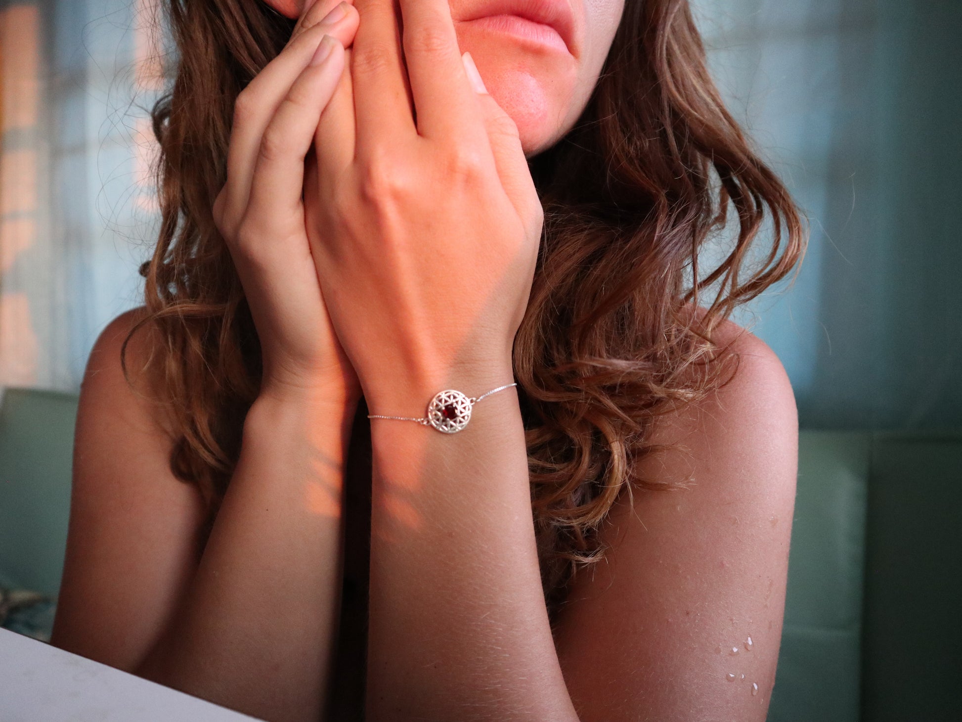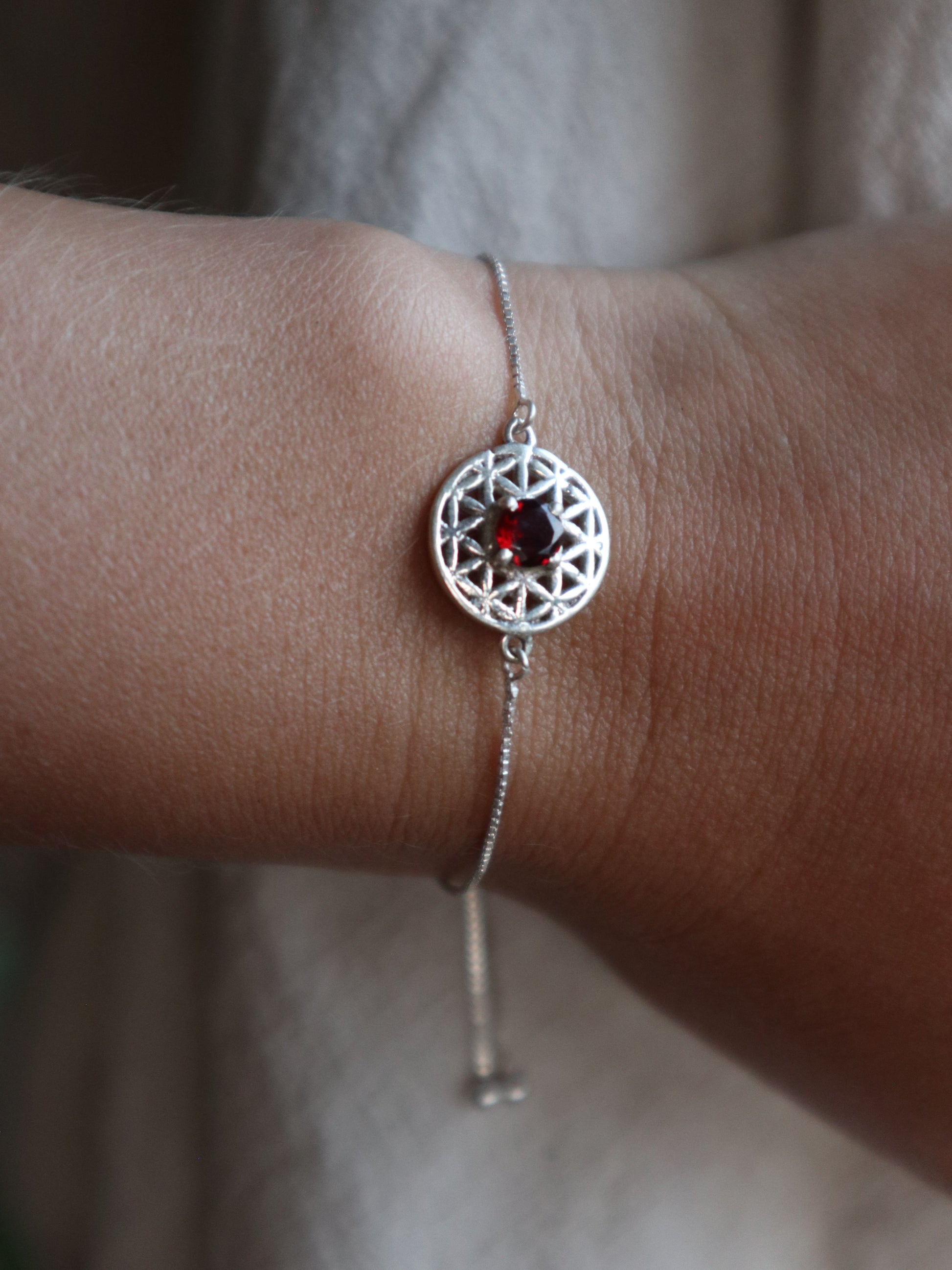 Wurzelchakra Flower Power Silber 92,5 Armband mit Granat