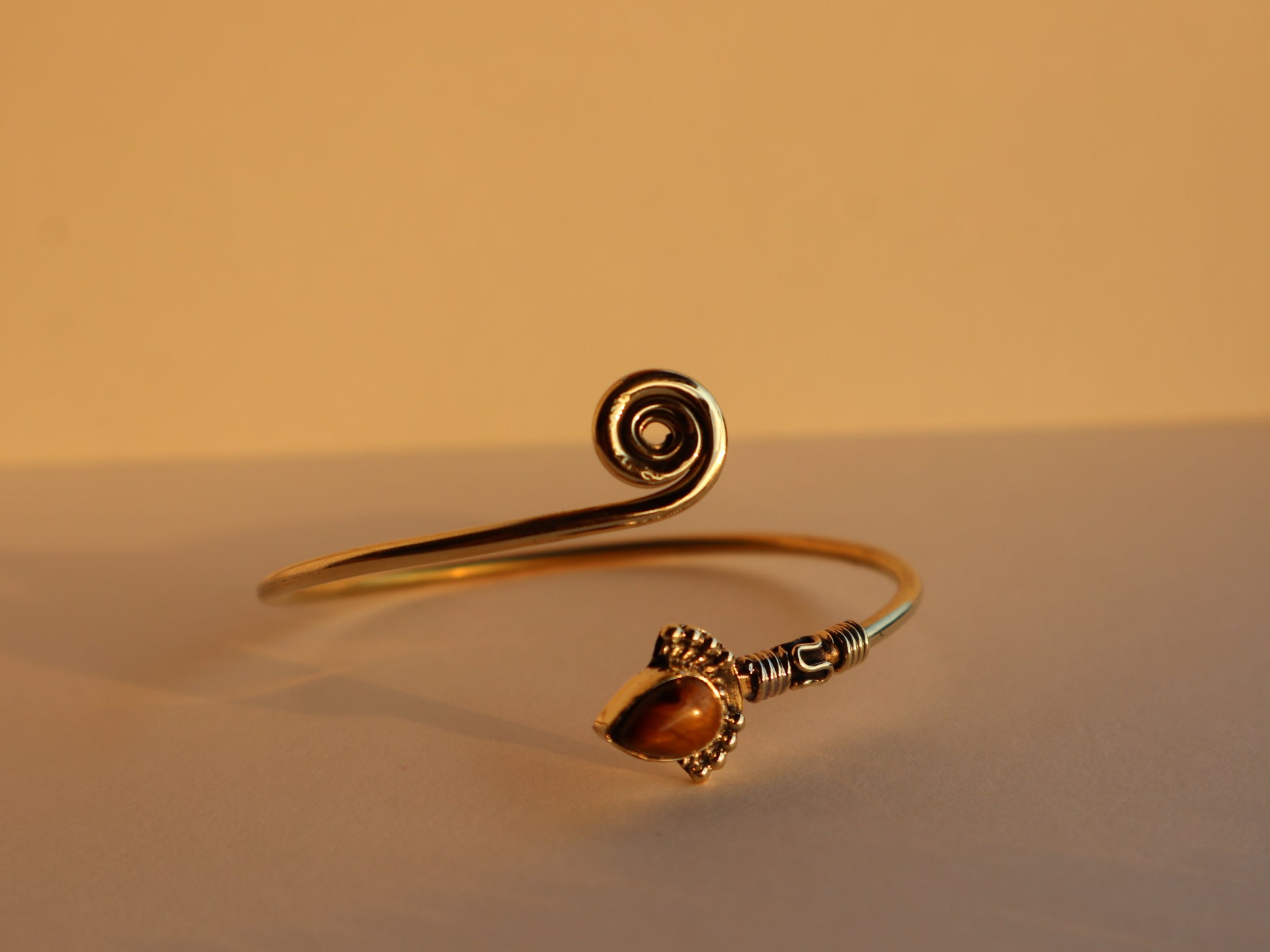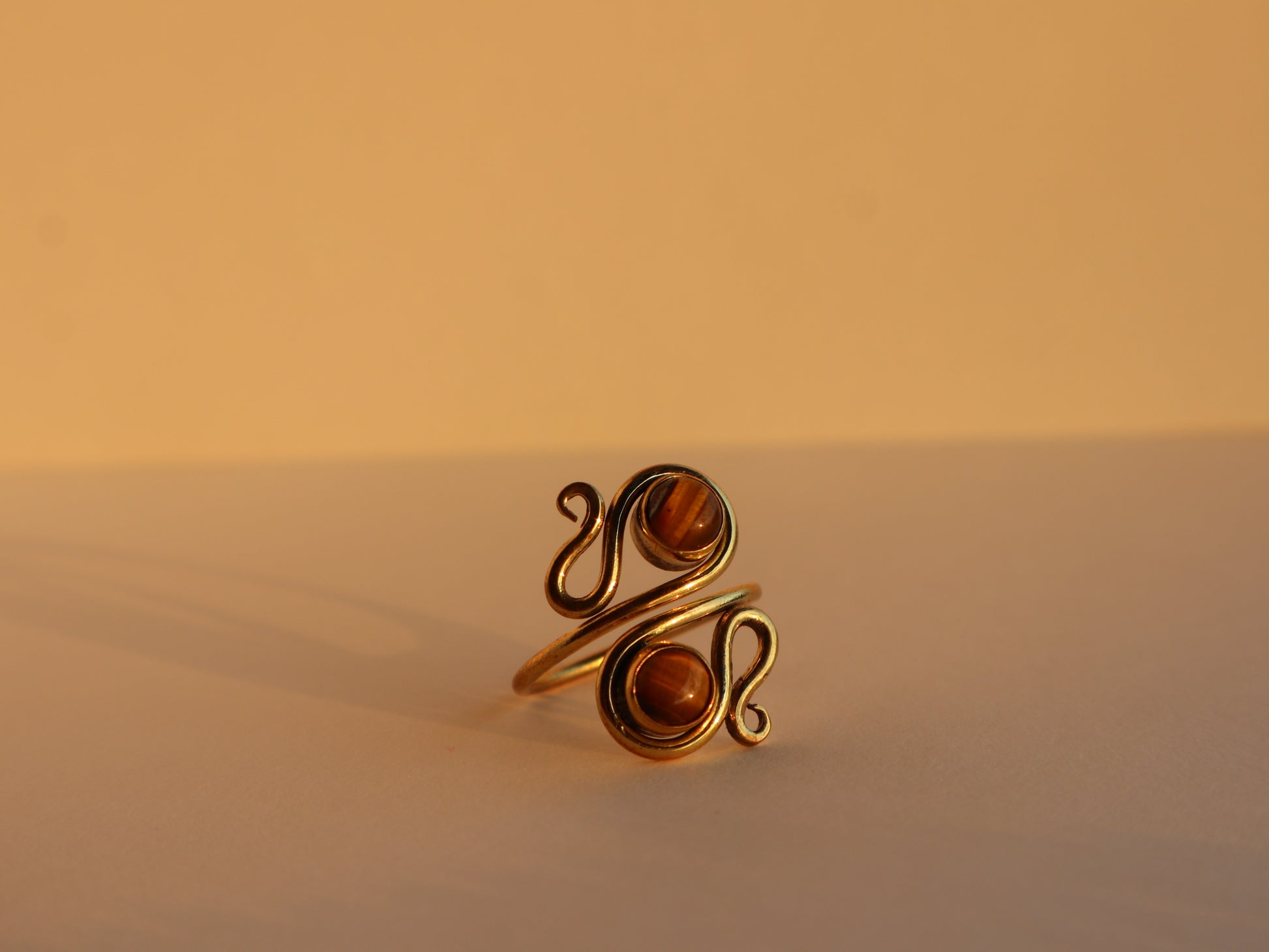 Beautiful handmade adjustable unisex brass bracelet and adjustable unisex brass ring with magical tiger eye crystals