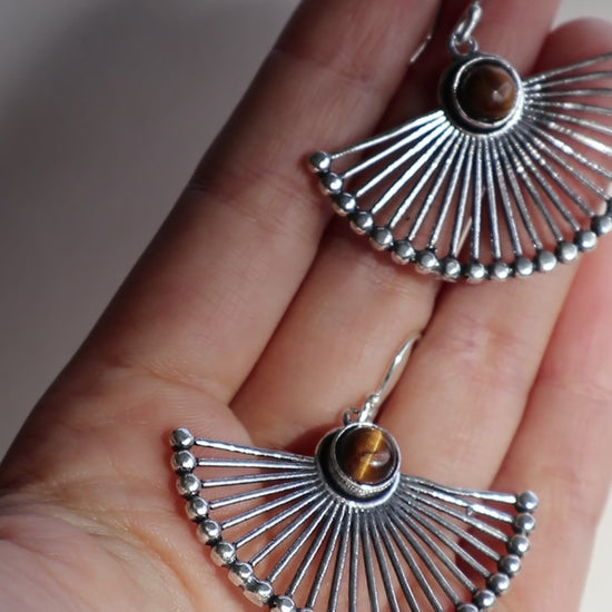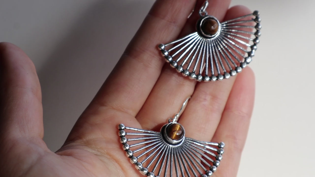 Beautiful handmade brass silver plated earrings with magical tiger eye crystal