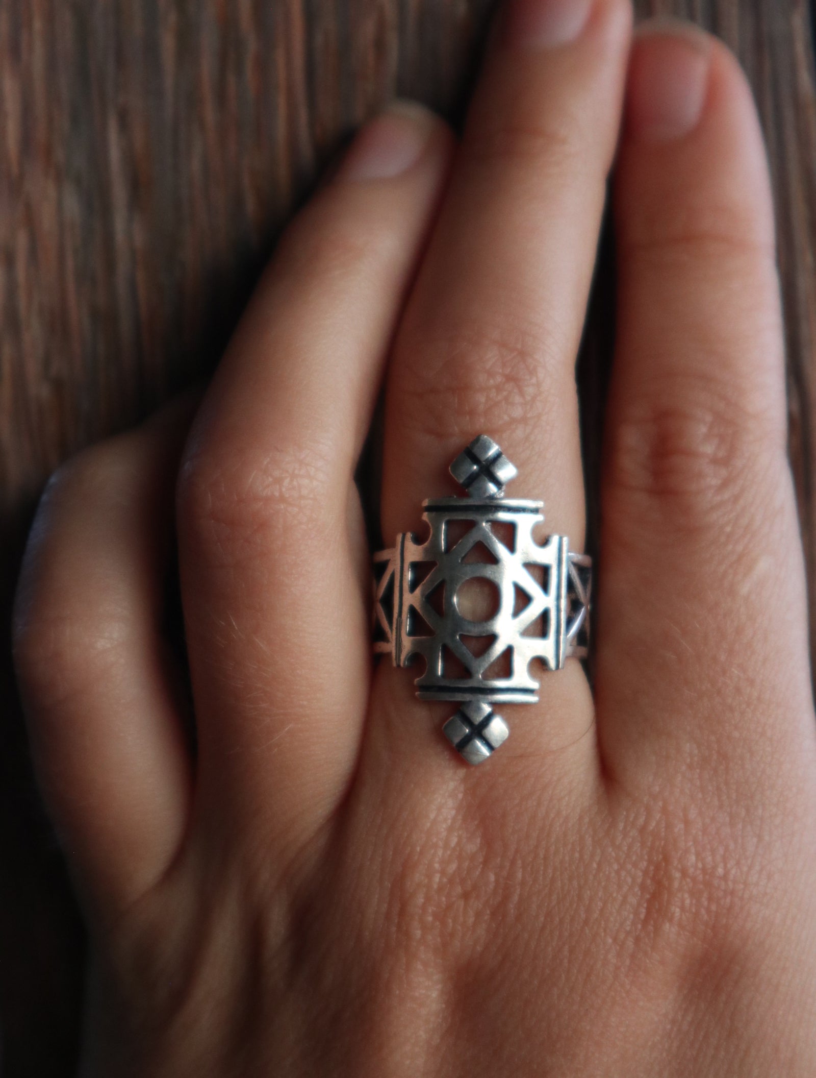 Beautiful handmade adjustable unisex silver plated brass ring with magical marriage of opposites