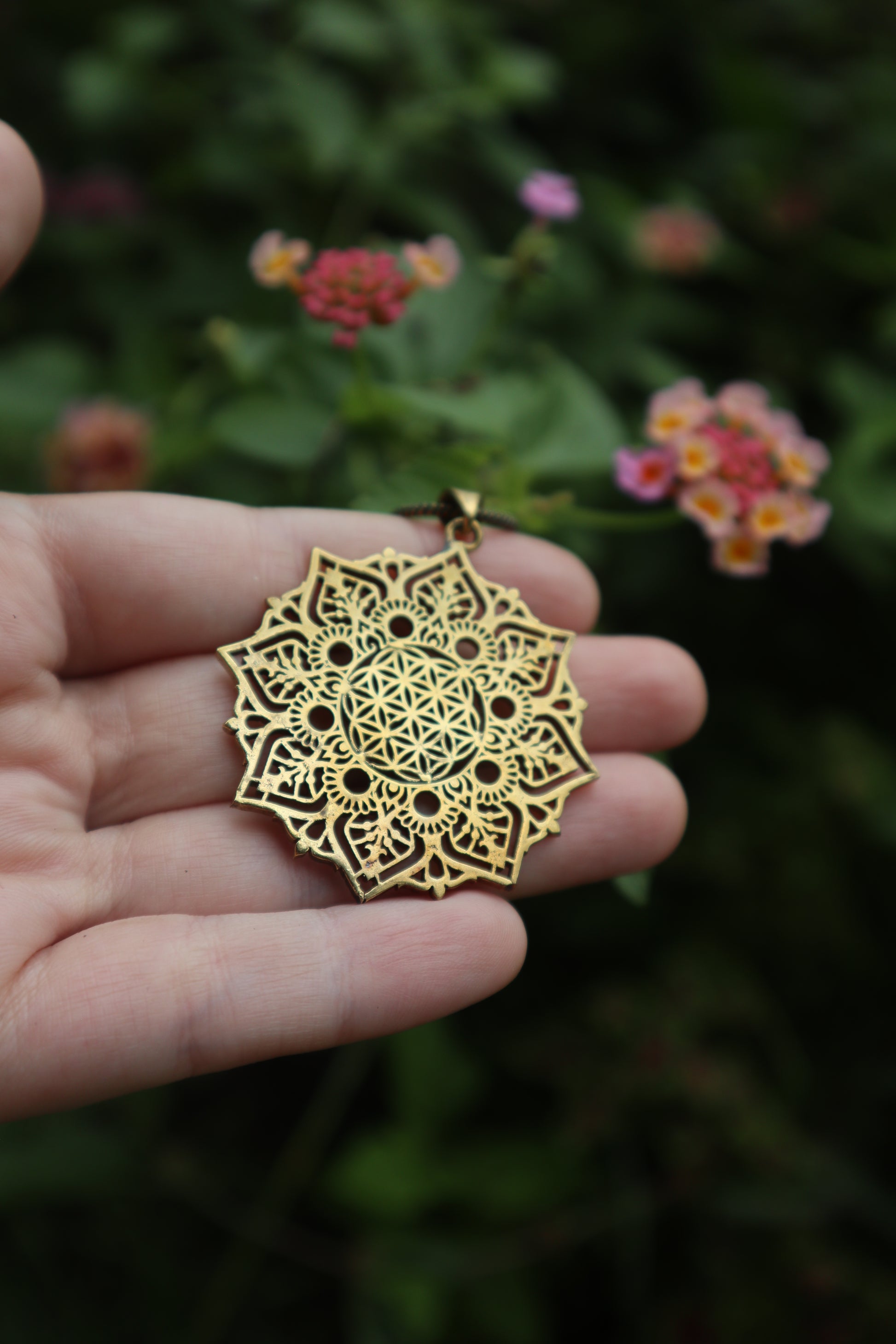 Surrounded by a delicately carved mandala, this piece radiates balance, unity, and spiritual awakening. Wearing it helps align your energy with the sacred geometry of life, opening pathways to clarity, expansion, and infinite connection.