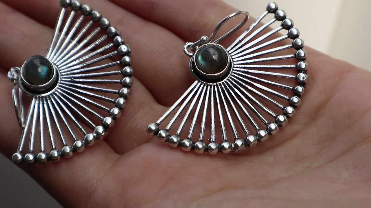 Beautiful handmade brass silver-plated eairings with magical labradorite crystal