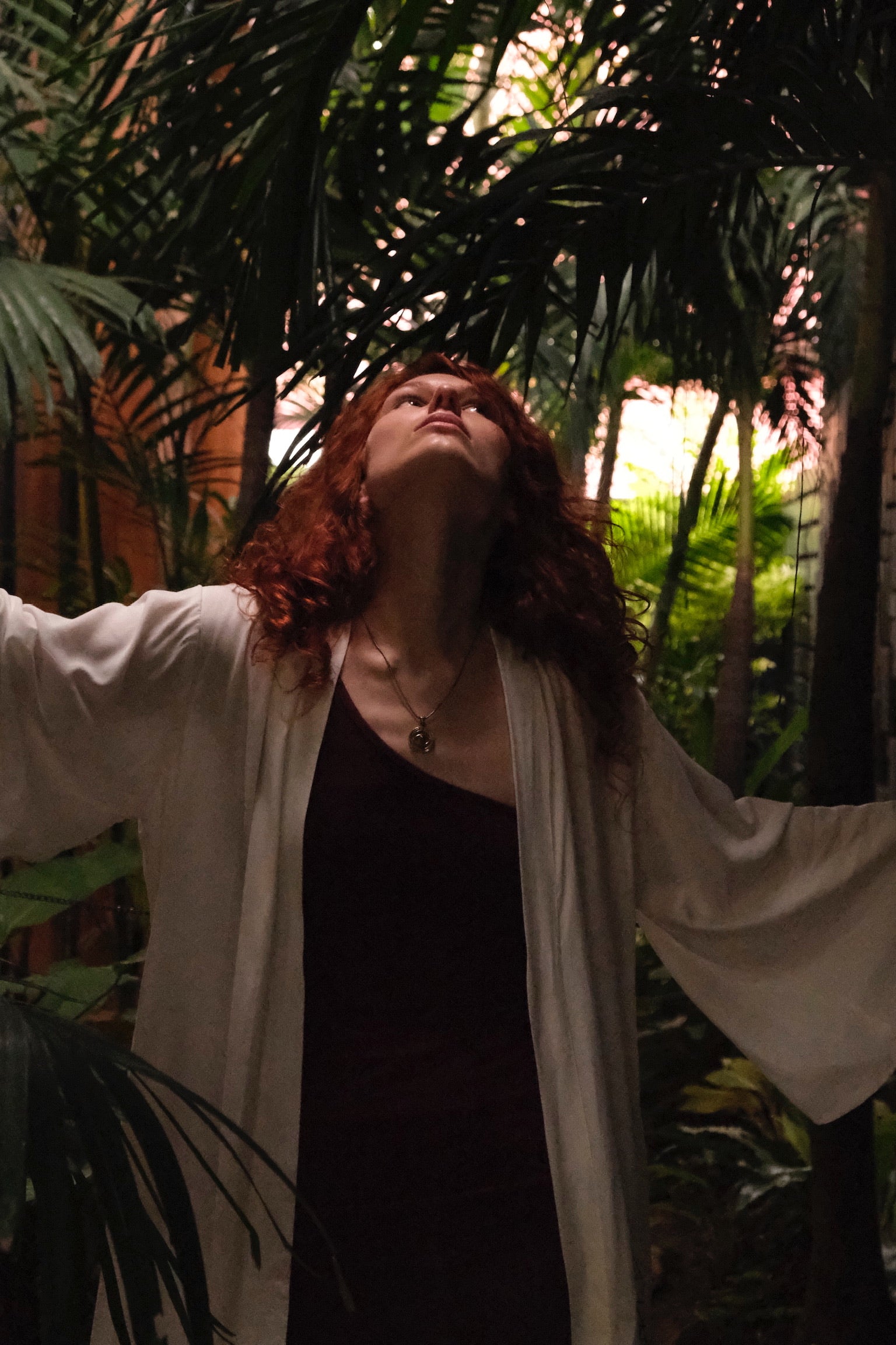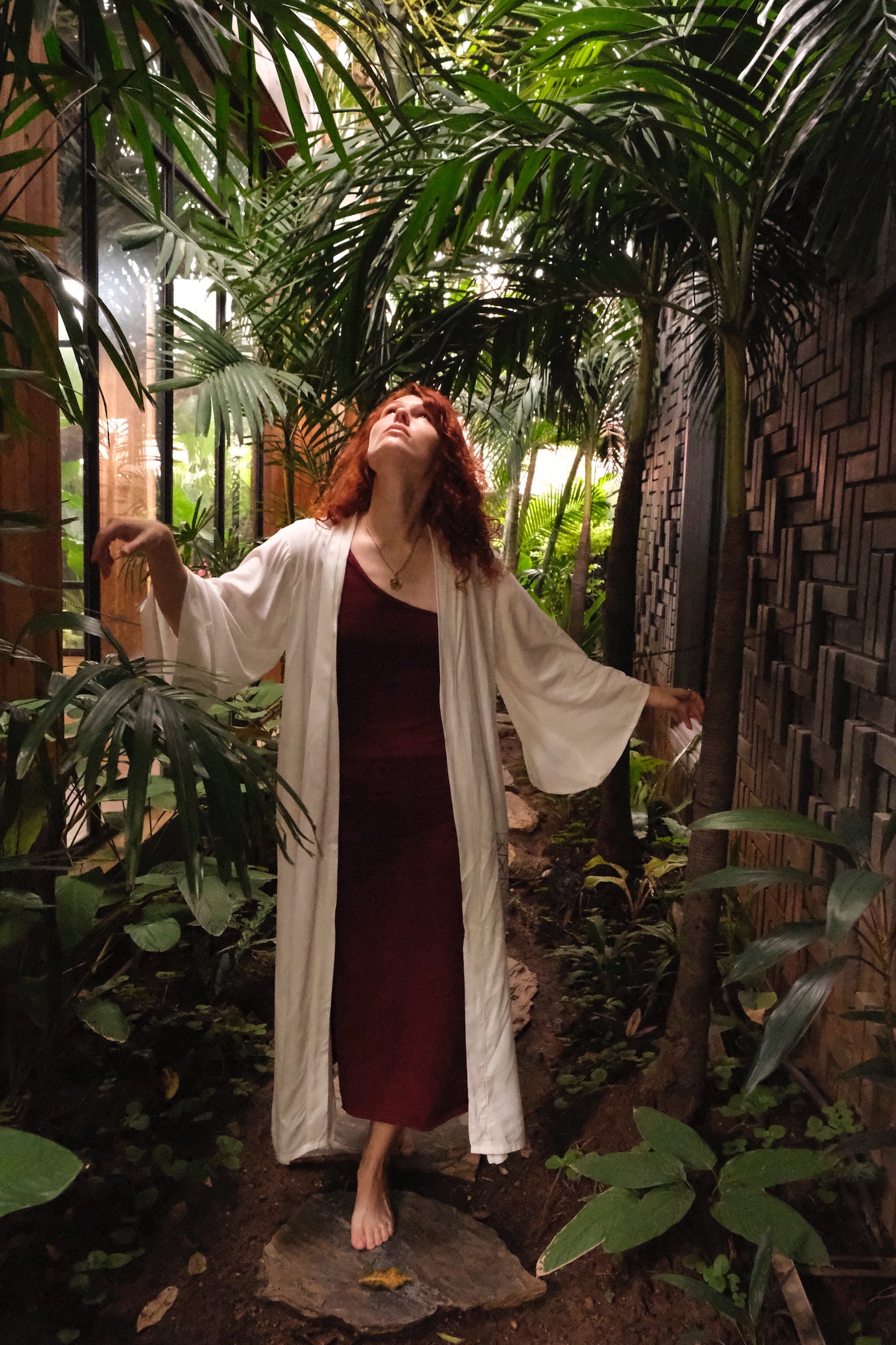 Sri Yantra / White Pacha Mama Unisex Block-printed Long Kimono