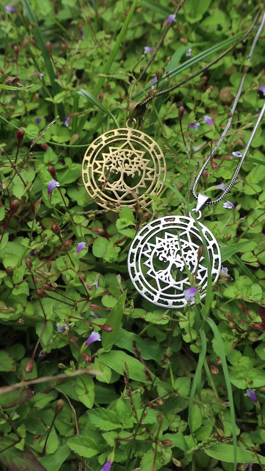 This golden pendant carries the ancient Tree of Life, a timeless symbol of connection, balance, and infinite growth. The roots reach deep into the earth while the branches stretch toward the heavens, reminding us of our place between the material and spiritual worlds.