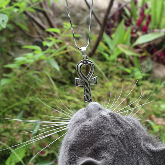 This handcrafted pendant carries the ancient Egyptian symbol of the Ankh, representing eternal life, vitality, and spiritual rebirth. Wrapped gracefully around the Ankh is the serpent of wisdom and healing, a sacred emblem of transformation and divine knowledge.