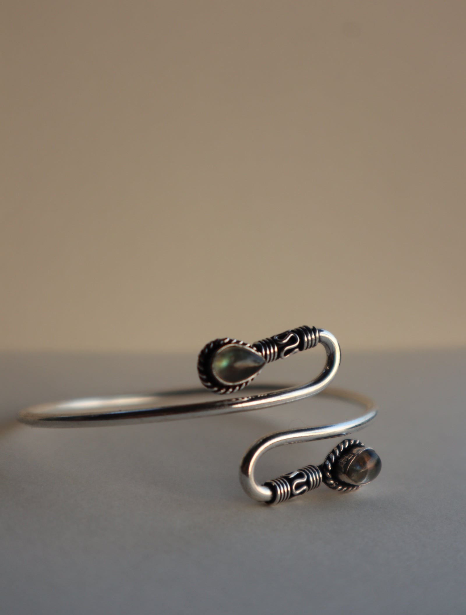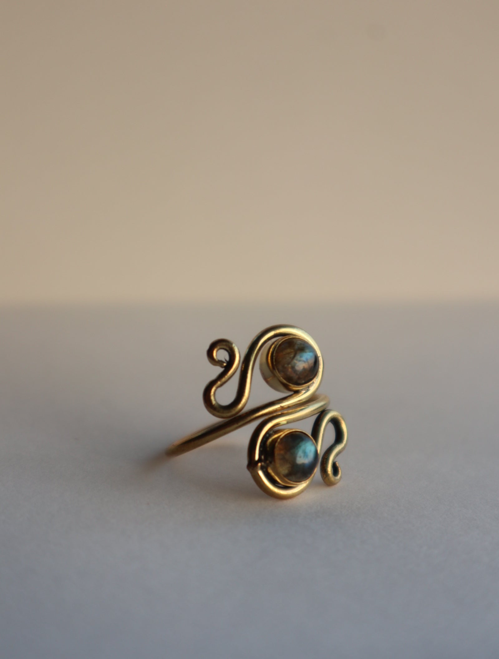 Beautiful handmade adjustable silver plated brass bracelet and adjustable brass ring with magical labradorite crystals. The mix of silver and golden color is by far my favorite choice