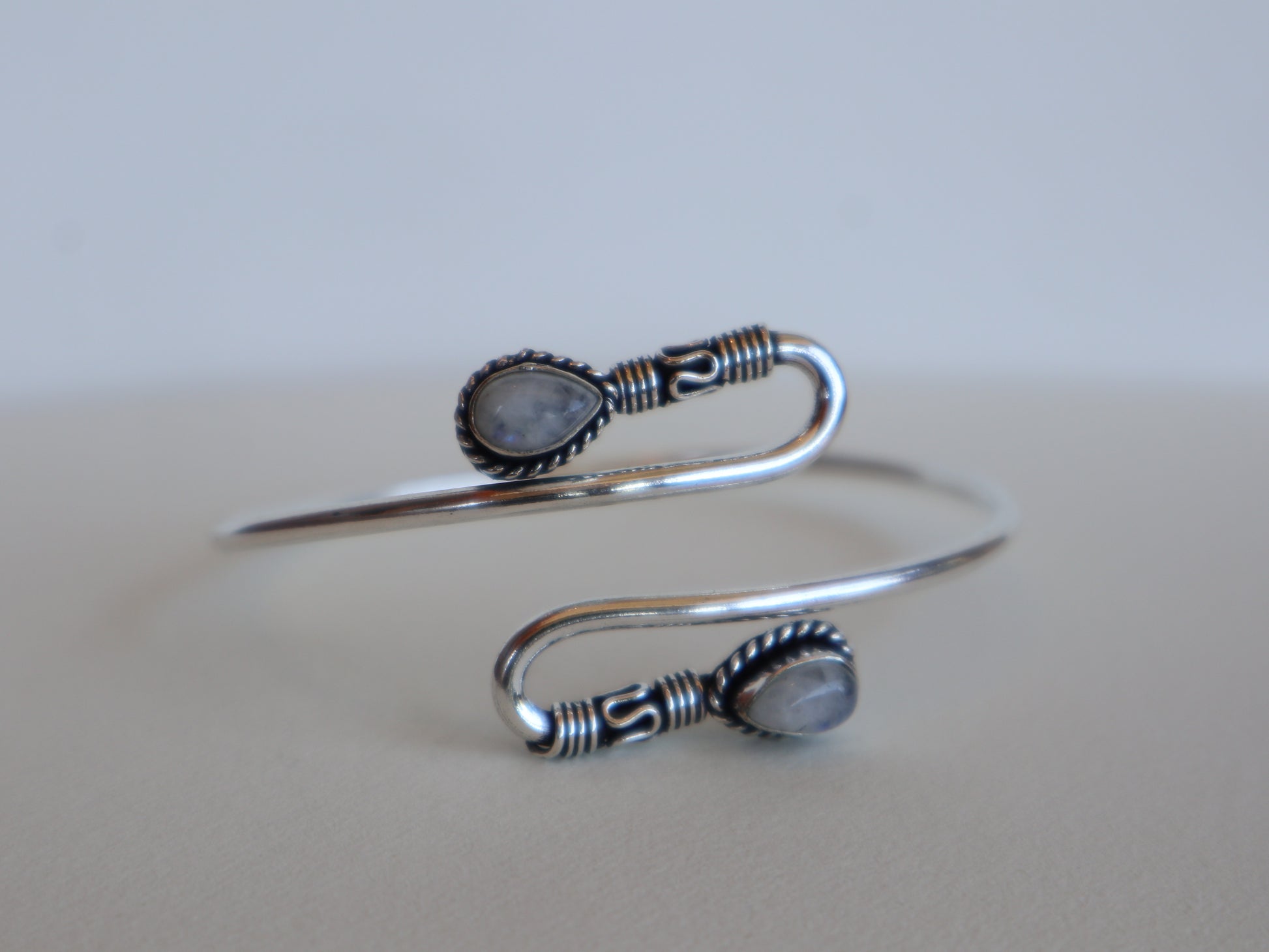 Beautiful handmade adjustable unisex silver plated brass bracelet with magical moonstone crystals